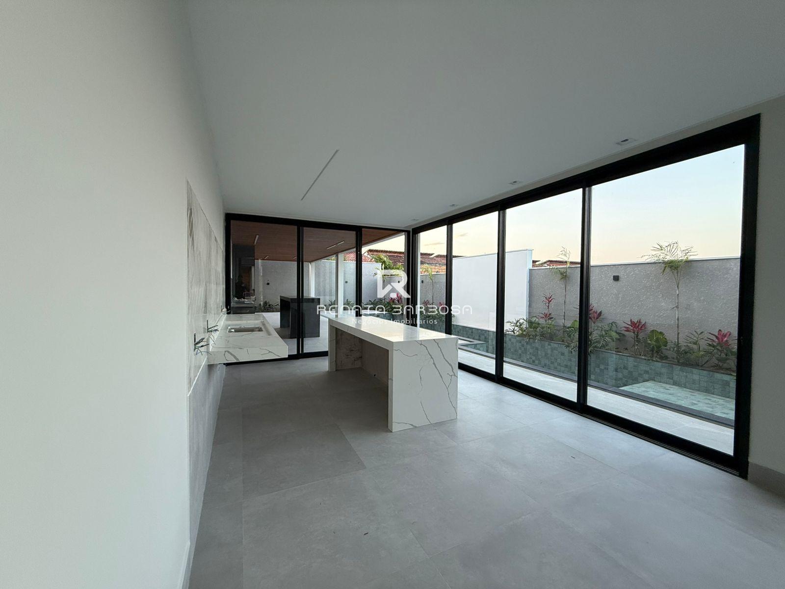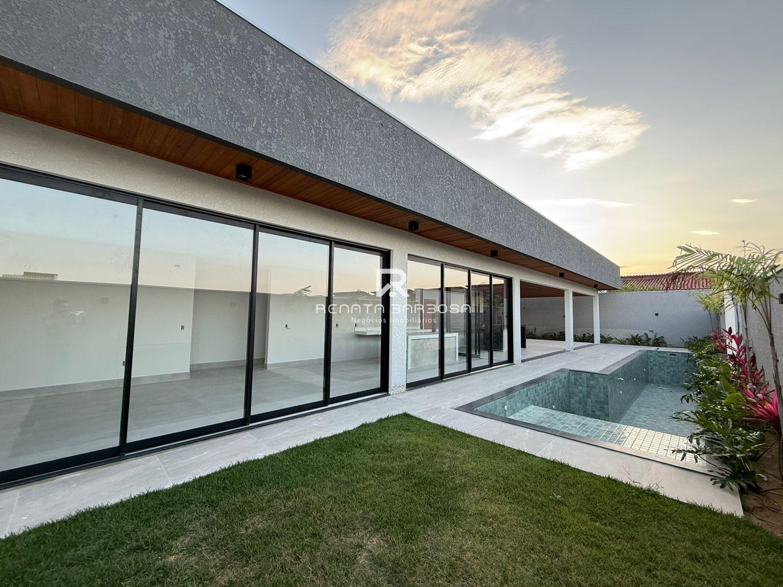 Ampla sala de estar e jantar integradas (com pé direito alto) 04 Suítes, sendo 01 master com closet; Cozinha; Espaço de lazer privativo com piscina e paisagismo; Area Gourmet; Lavabo Externo; Garagem;